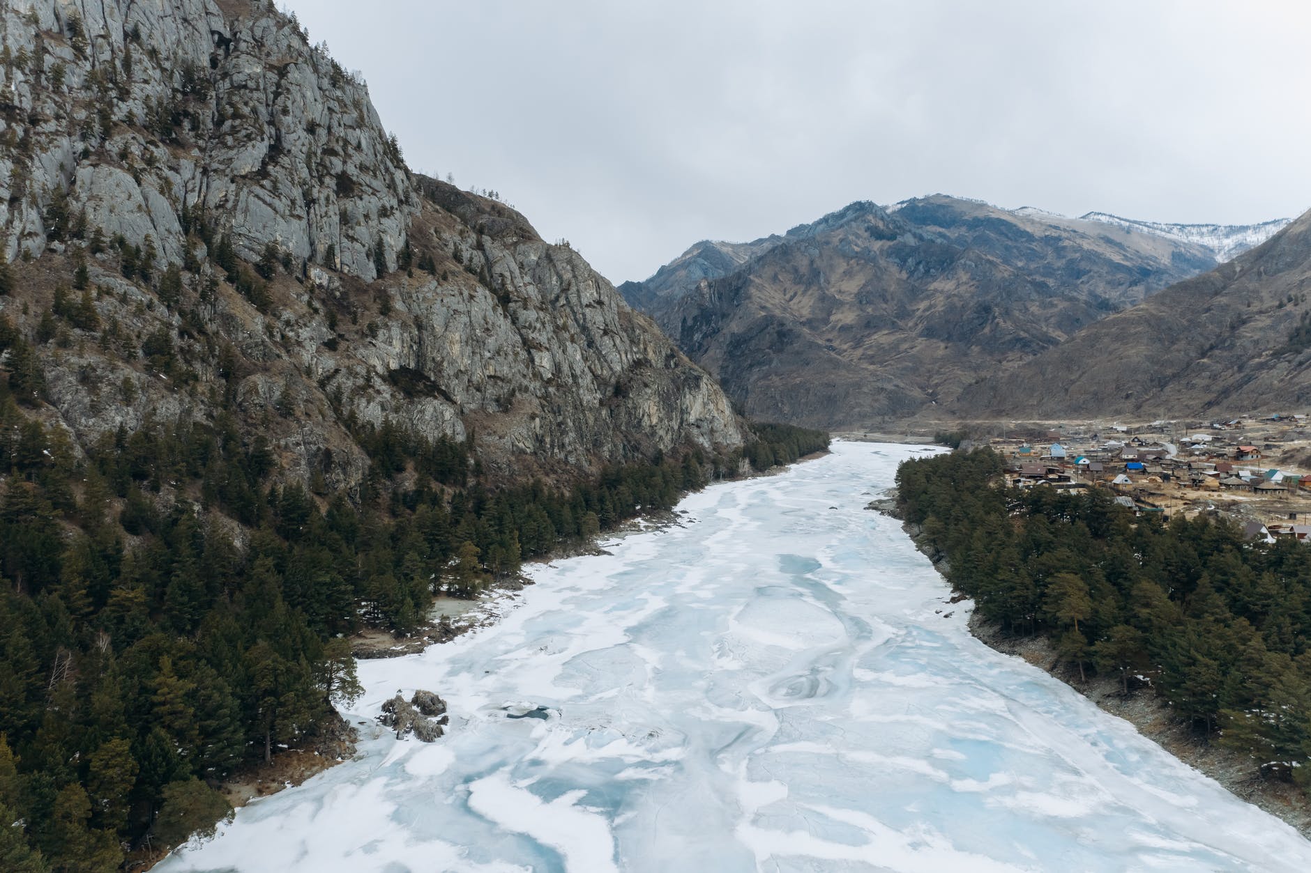 The current could be moving quickly. The water could have rapids and rocks, with many bends and curves.